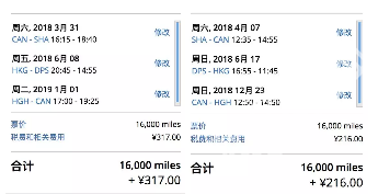 3月31日至4月7日,清明节请3天休8天,广州往返上海虹桥;6月8日至6月17日,端午节请5天休10天,香港往返巴厘岛;12月23日至明年1月1日,圣诞元旦跨年请6天休11天(加上冬至),广州往返杭州。UA和国航都很厚道地没有屏蔽节假日,上面全部踩着节假日的票都有位置而且能正常出票,三趟往返票一共需要3.2万里程以及533元的税费。